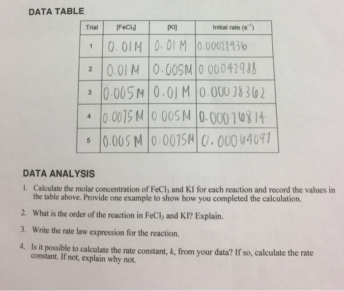Solved Data Table Trial Feclal Initial Rate S 1 0 0 M 0 Chegg Com